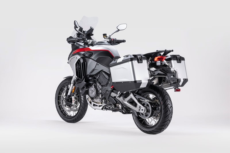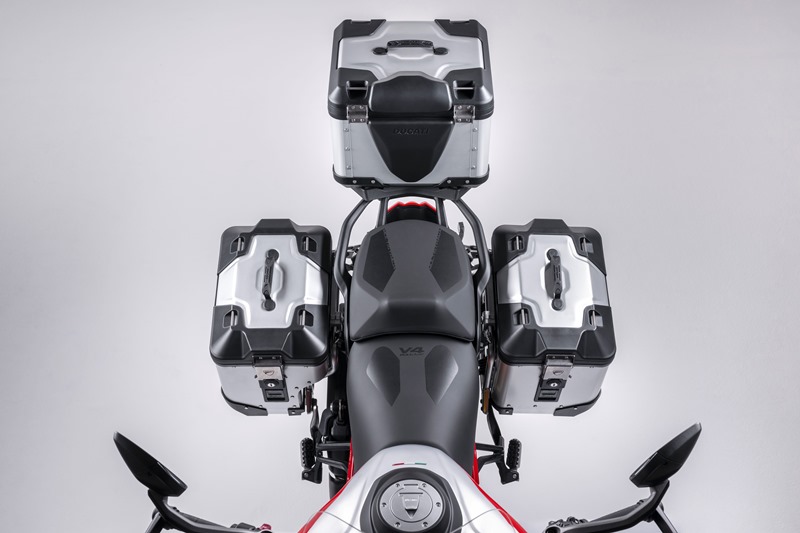 Berbanding dengan versi standard, Multistrada V4 Rally dilengkapi dengan tangki bahan api aluminium berkapasiti lebih besar iaitu 30 liter. Ini bagi meningkatkan lagi jarak tunggangan, sekaligus membolehkan penunggang menjelajah ke lokasi-lokasi terpencil.