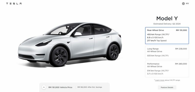 Mereka yang mahukan Tesla Model Y kini boleh mendapatkan versi asas RWD pada harga bermula dari RM191,000, berbanding harga asal RM199,000 semasa pelancaran rasmi dibuat.