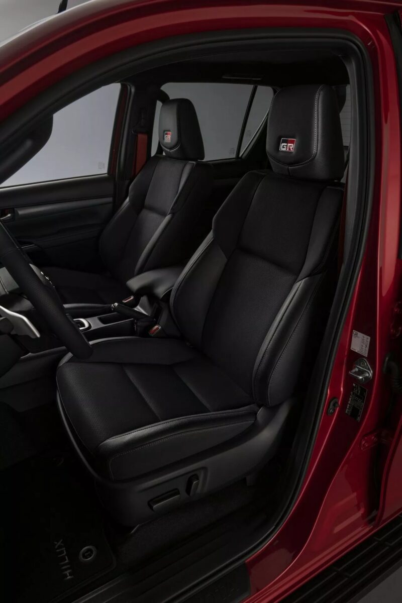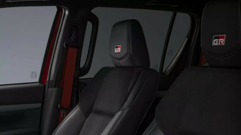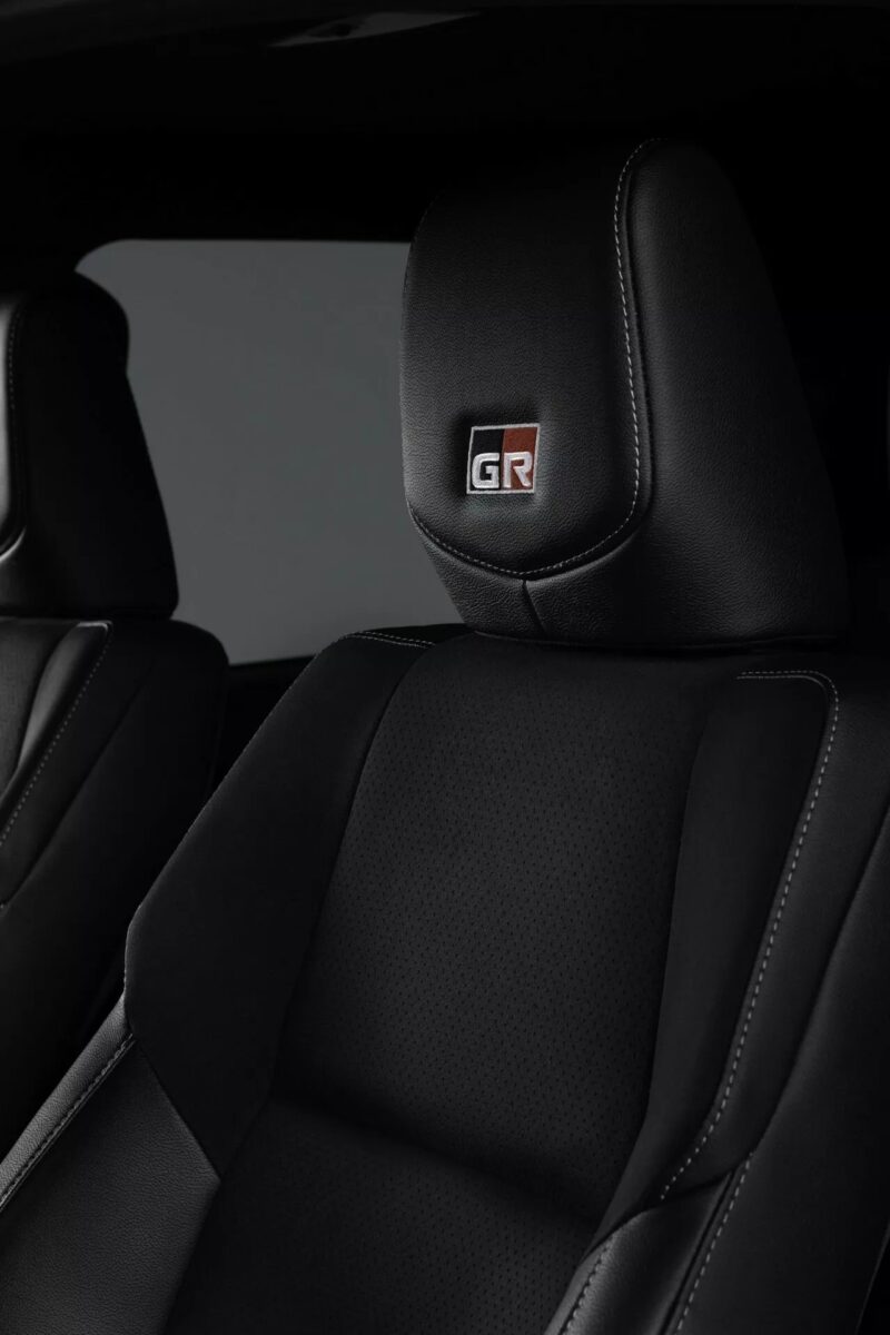 Untuk ruang kabin, Toyota menggunakan upholsteri kulit hitam dan suede untuk tempat duduk sports, logo GR pada perehat kepala, tali pinggang keledar merah, serta pedal aluminium.