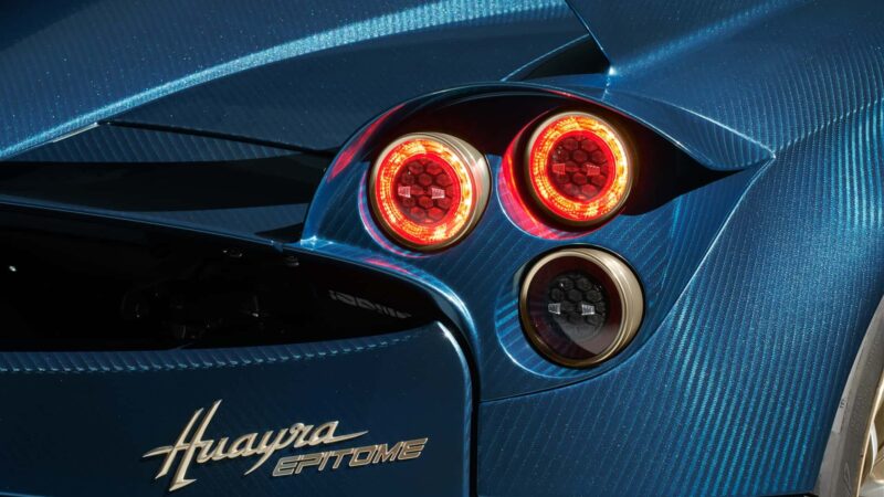 Jika anda lihat dengan lebih dekat, warna biru yang digunakan pada panel badan Huayra Epitome ini sebenarnya merupakan anyaman gentian karbon yang sebenar.