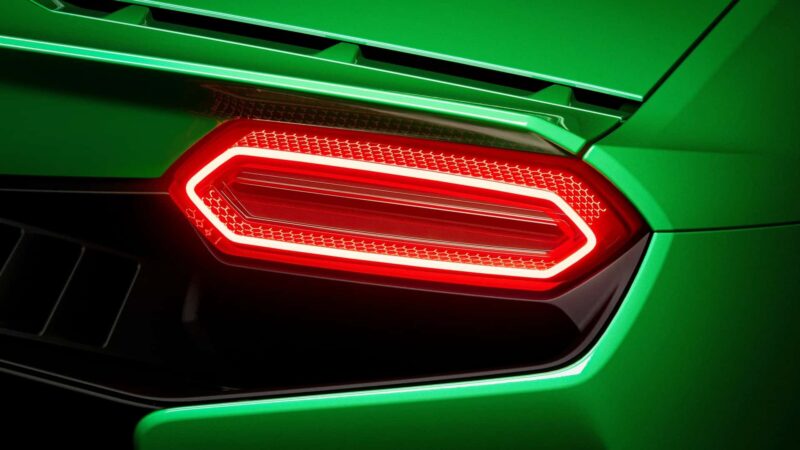 Unit lampu hadapan nampak lebih nipis berbanding Huracan, sementara bahagian belakang pula dihiasi dengan struktur LED berbentuk heksagon.