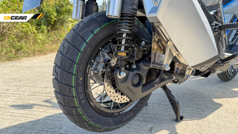 Aspek tunggangan dibantu dengan penggunaan suspensi fork hadapan jenis terbalik (USD) 41 mm dengan larasan mampatan/lantunan, penyerap hentak berkembar di belakang dengan larasan pra-bebanan, dan sistem brek J.Juan.