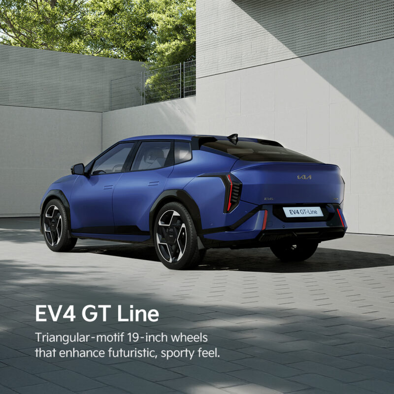 Pembeli juga berpeluang untuk mendapatkan Kia EV4 dalam varian GT-Line yang menawarkan rim 19 inci, diikuti dengan bampar hadapan dan belakang yang lebih sporti.