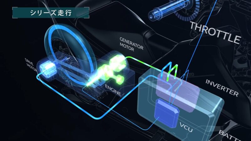 Salah satu daripada motor elektrik tersebut digunakan untuk menggerakkan roda, manakala sebuah lagi motor elektrik dihubungkan terus dengan enjin untuk menjana kuasa elektrik.
