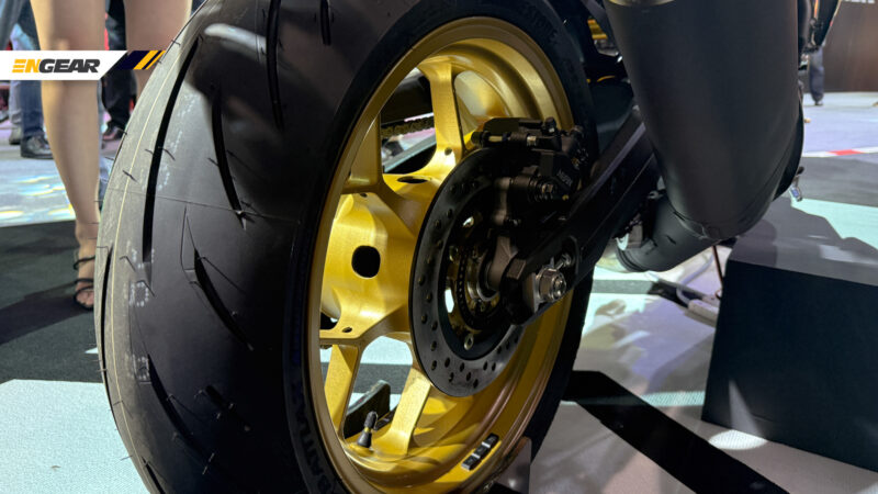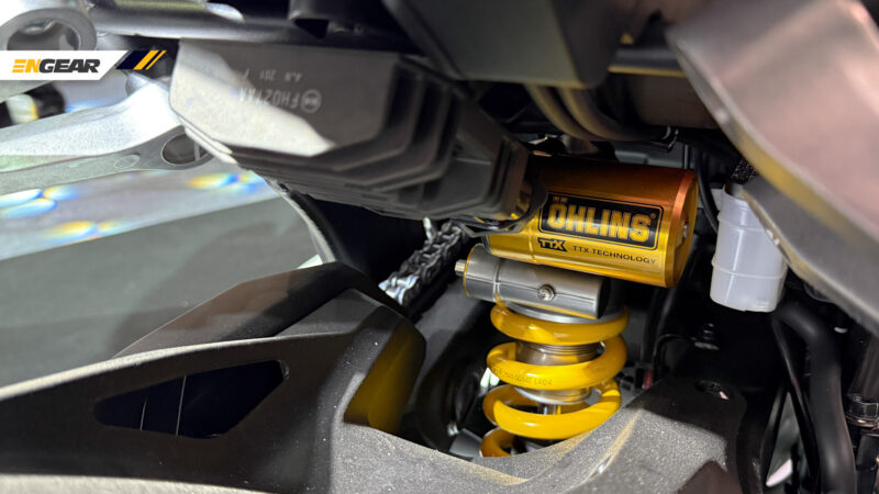 Aspek tunggangan dibantu dengan penggunaan fork hadapan Showa SFF-BP jenis terbalik 41 mm dengan larasan pra-beban, diikuti penyerap hentak tunggal belakang Ohlins TTX36 juga hadir dengan larasan pra-beban.
