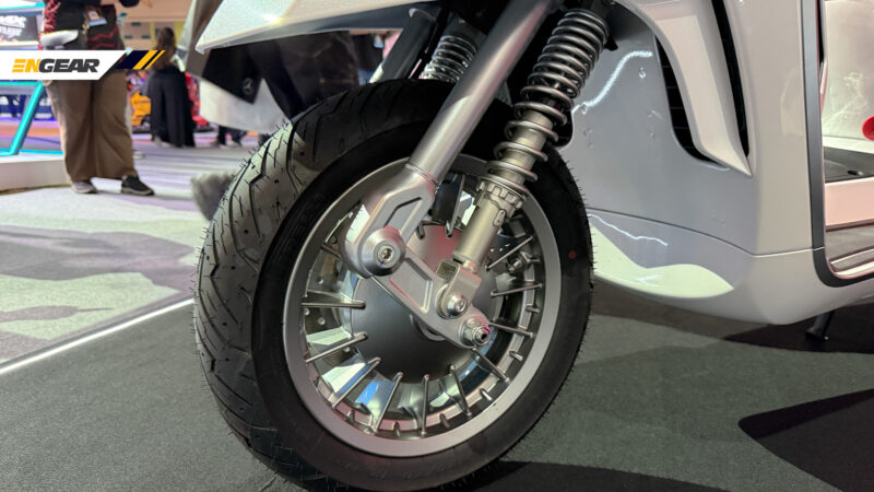 Casis keluli monocoque skuter ini disokong oleh tetapan suspensi jenis double arm-link dengan penyerap hentak berkembar untuk roda depan, serta tetapan penyerap hentak berkembar di belakang.