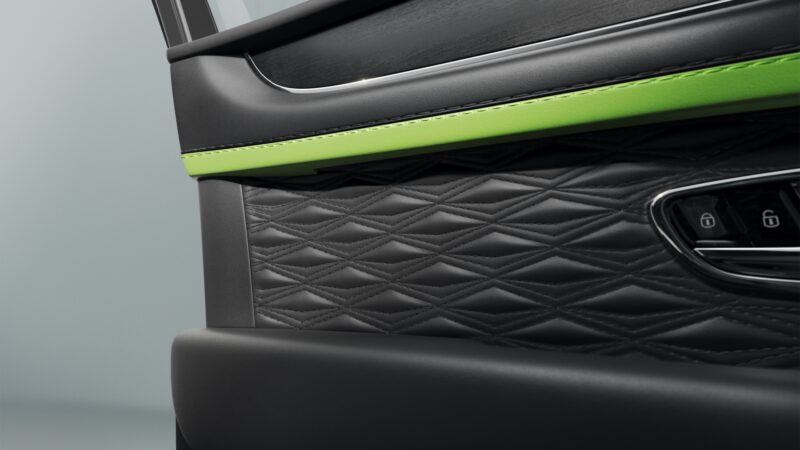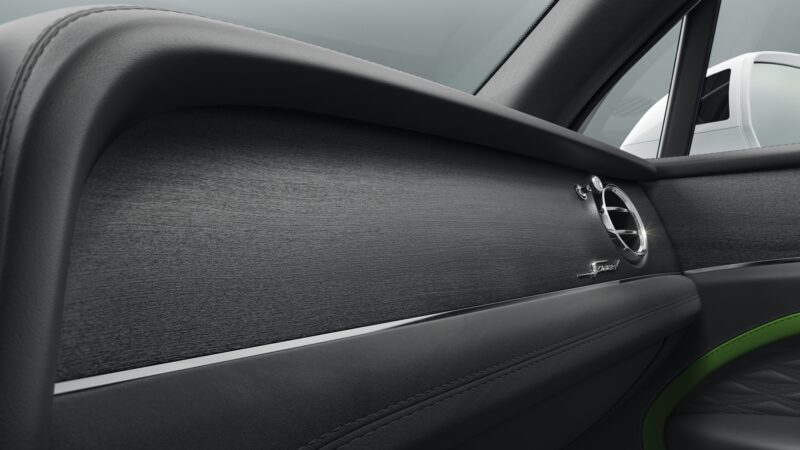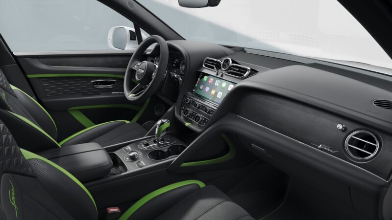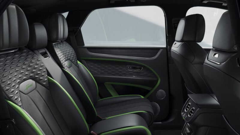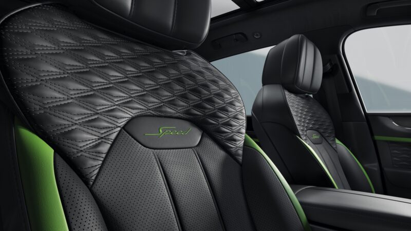 Ruang kabin Bentayga Speed mendapat kemasan corak Precision Diamond Quilt, emblem Speed pada tempat duduk, serta pakej Dark Chrome Interior Specification bagi menggantikan warna krom standard.