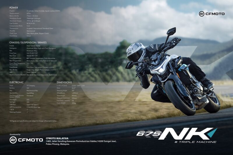 CFMoto Malaysia melancarkan sebuah lagi model baharu iaitu CFmoto 675NK bersempena dengan pembukaan CFMoto Flagship Store di Ipoh, baru-baru ini.