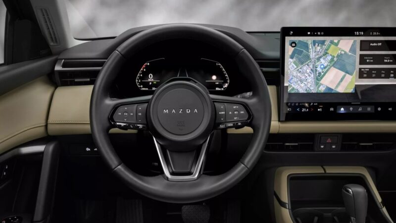 Untuk varian yang lebih rendah, Mazda menawarkan skrin tengah sebesar 12.9 inci.