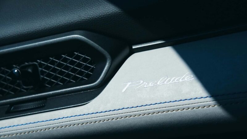 Selain skrin kluster digital 10.25 inci dan skrin tengah 9 inci yang sama macam Civic, Prelude mengguna pakai rekaan roda stereng jenis bawah rata dengan penanda pukul 12, kemasan jahitan biru dan corong pendingin hawa yang lebih kecil.