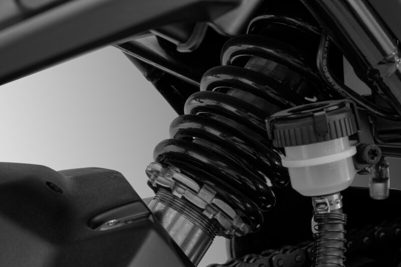 Suspensi jentera ini terdiri daripada fork hadapan jenis terbalik, diikuti dengan penyerap hentak gegelung tunggal boleh laras serta redaman minyak di bahagian belakang.