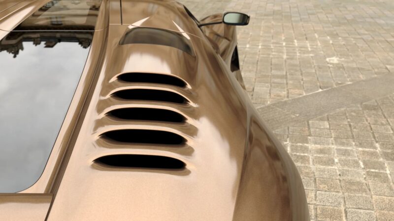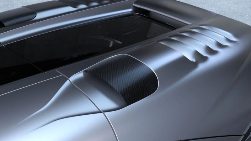 Rekaan luaran yang cukup berseni ini dihasilkan oleh bekas pereka Bugatti dan Rimac, Angel Guerra di mana beliau banyak mengambil inspirasi daripada model ikonik seperti Lancia Stratos Zero dan Lamborghini Countach.