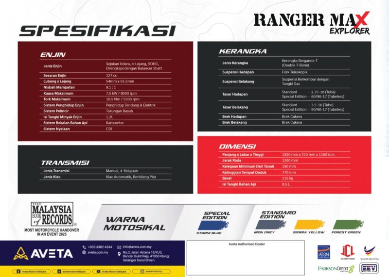 Aveta Malaysia umum naik taraf Ranger Max Explorer – harga dari RM6,988