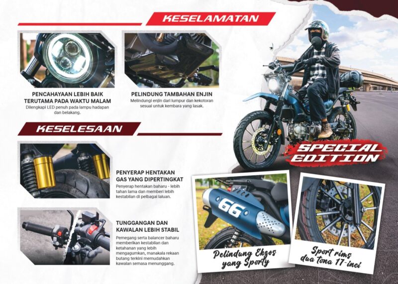 Berdasarkan kejayaan model tersebut, Ranger Max Explorer 2025 kini diberikan penambahbaikan, seperti contoh brek cakera depan dan belakang, reka bentuk mudguard dan pelapik fender baharu, serta rekaan bar hendal lengkap dengan butang pemegang, grip dan balancer tambahan.