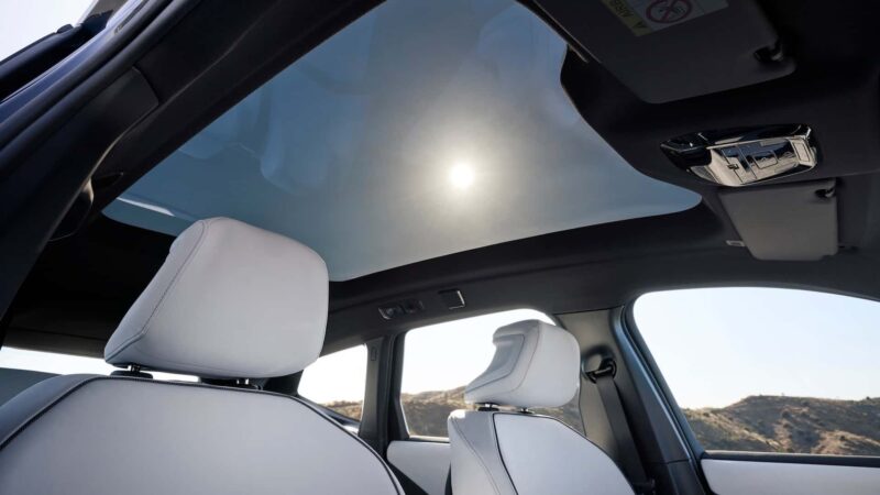 Terdapat juga roda stereng empat jejari dengan butang fungsi berasaskan sentuhan, diikuti beberapa butang kawalan fizikal yang terdapat pada konsol tengah.