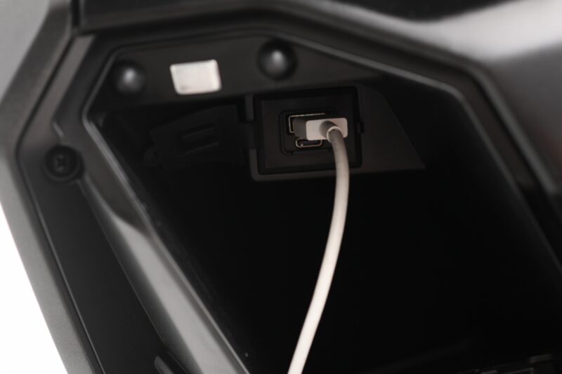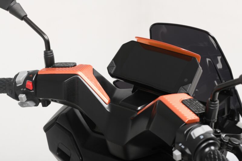 Antara ciri yang dimuatkan termasuklah unit pencahayaan LED depan dan belakang, lampu nyalaan siang (DRL), skrin penghadang angin, skrin paparan TFT 6-inci, port pengecasan USB Type-A dan Type-C, ruang simpanan dengan penutup magnetik, serta rak barangan di belakang.