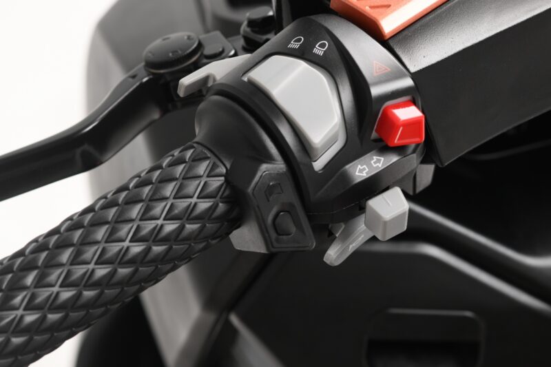 Ciri keselamatan termasuklah sistem brek ABS dua saluran, kawalan cengkaman (TCS), suis keselamatan topang sisi, serta kamera perakam tunggangan di hadapan.