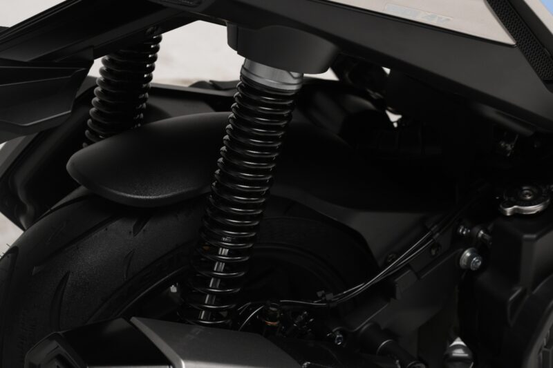 Suspensi terdiri daripada fork teleskopik hadapan dengan jarak pergerakan roda 103 mm, diikuti penyerap hentak berkembar dengan jarak pergerakan roda 130 mm.