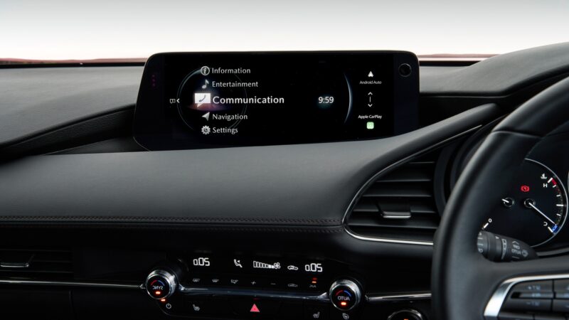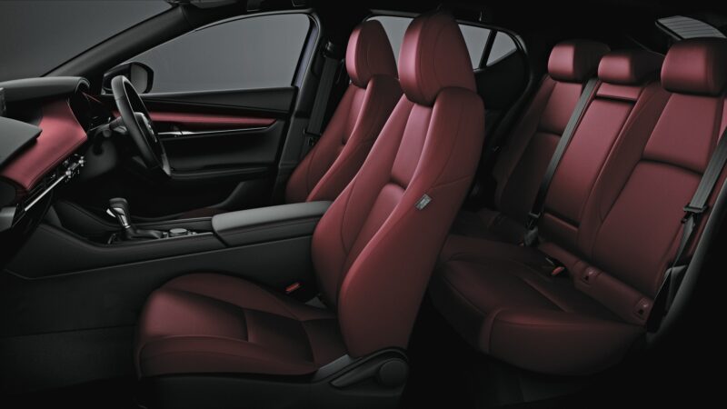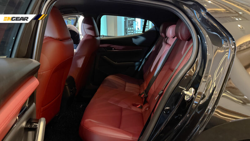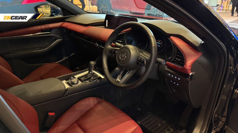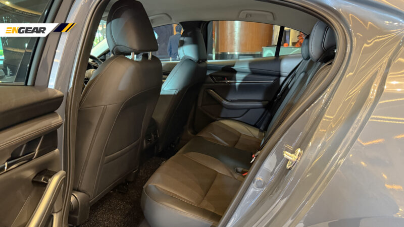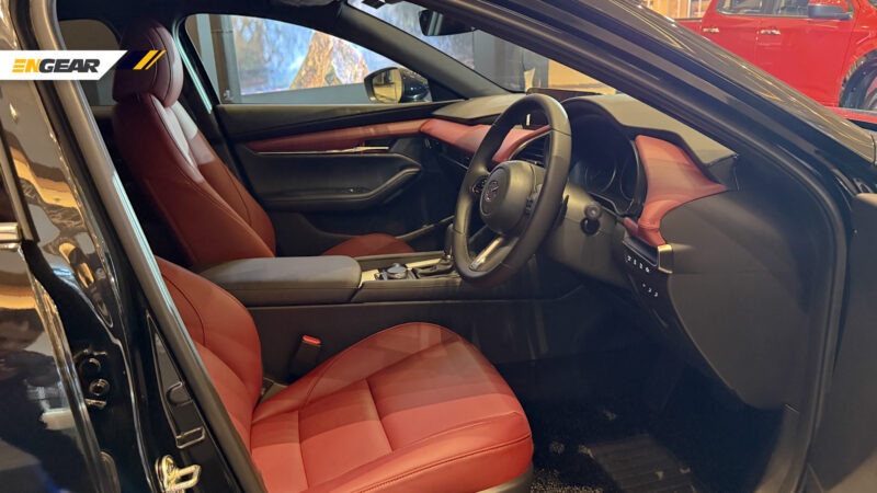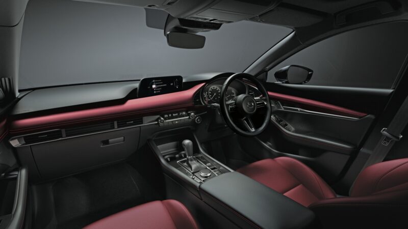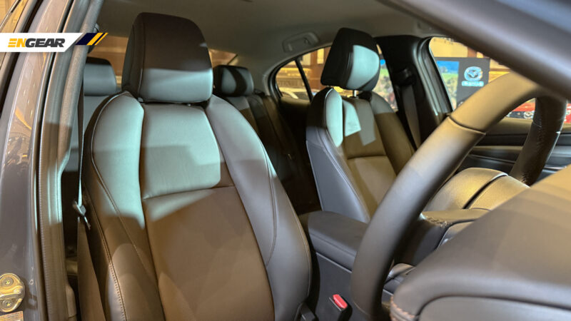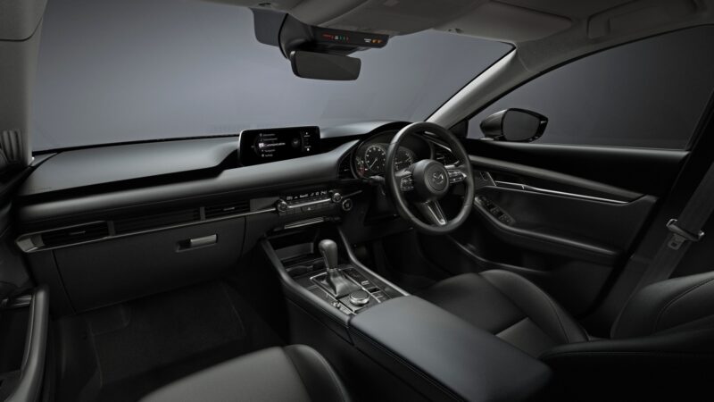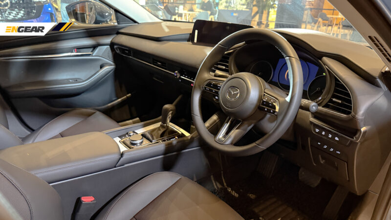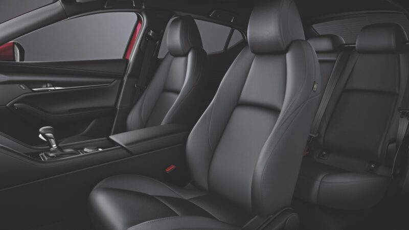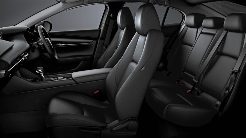 Mazda3 turut mendapat upholsteri balutan kulit pada roda stereng, tempat duduk balutan kulit larasan kuasa 10-tahap untuk pemandu dengan fungsi memori, tempat duduk penumpang larasan enam-tahap manual, paddle shifter, serta skrin paparan head-up berwarna.