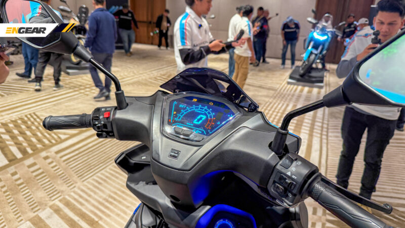 Ciri yang dimuatkan termasuklah unit lampu LED, lampu nyalaan siang DRL, skrin paparan LCD berwarna, port pengecasan USB Type-A dan Type-C, serta ciri keselamatan ABS dua-saluran.