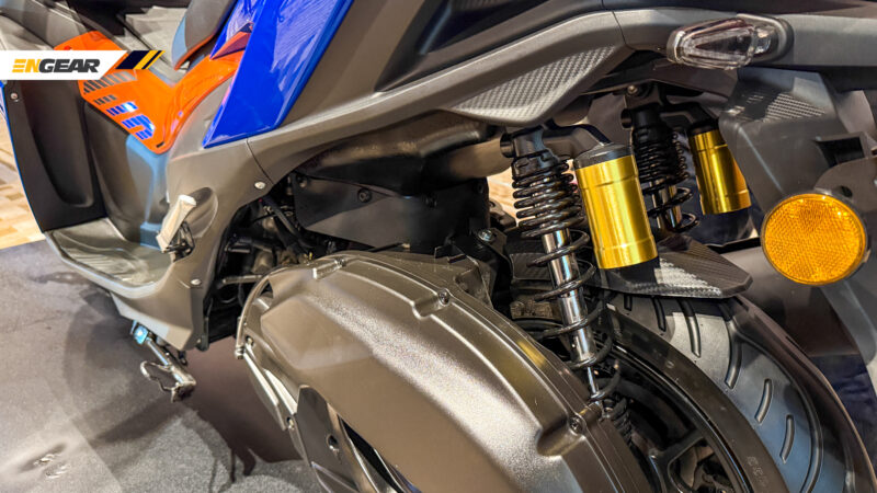 Suspensi terdiri daripada fork hadapan teleskopik (jarak pergerakan 75 mm) dibantu dengan penyerap hentak berkembar di belakang (jarak pergerakan 65 mm).