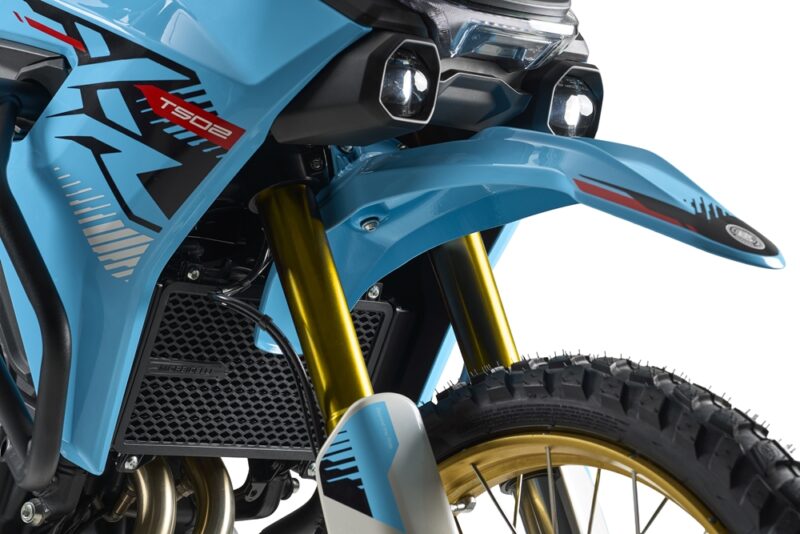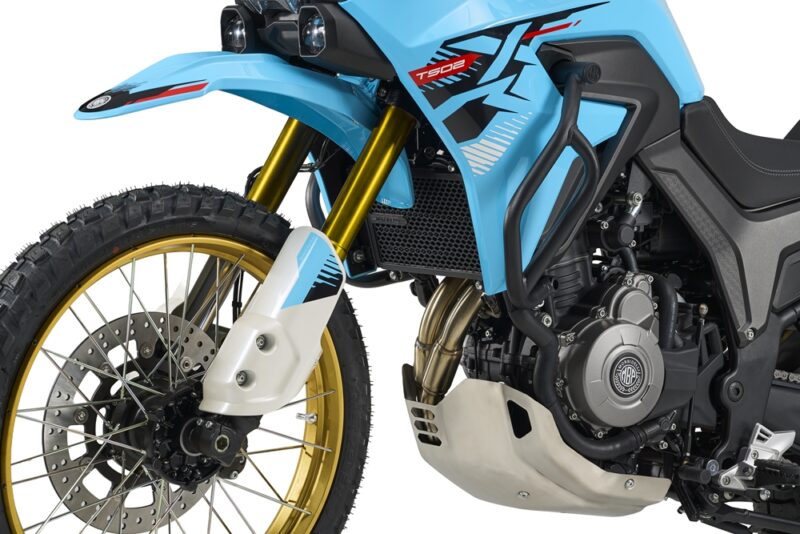 - Roda: T502XR menggunakan saiz Enduro 21″/18″; T502X menggunakan saiz Adventure 19″/17″.