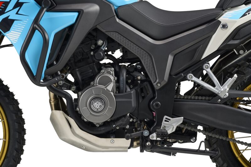 T502XR dikuasakan enjin L-twin 486cc dengan konfigurasi 90 darjah. Enjin 4-lejang, 8-injap ini menggunakan sistem penyejukan cecair dan sistem suntikan bahan api EFI-Marelli.