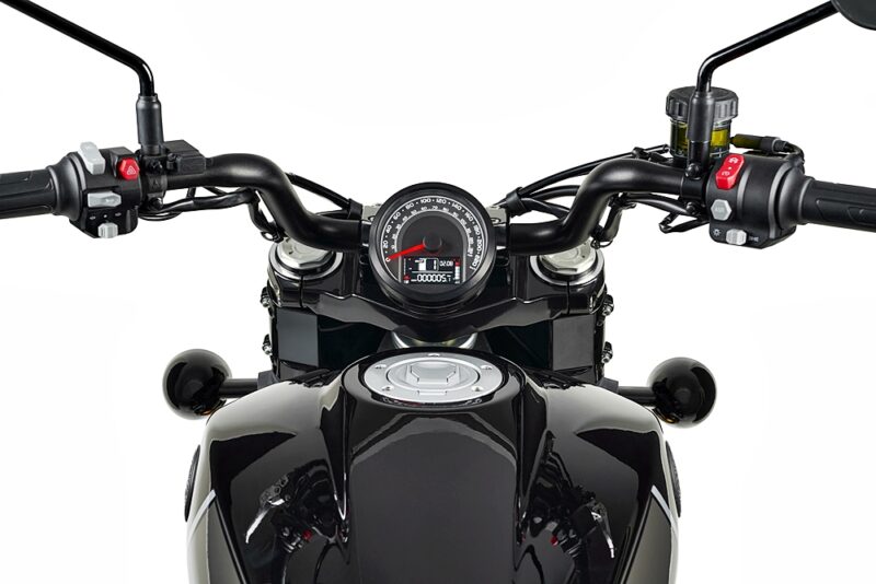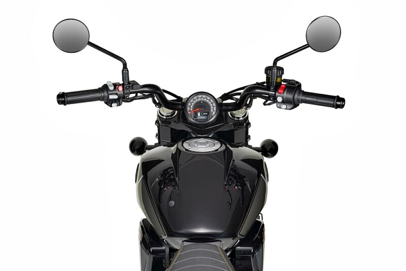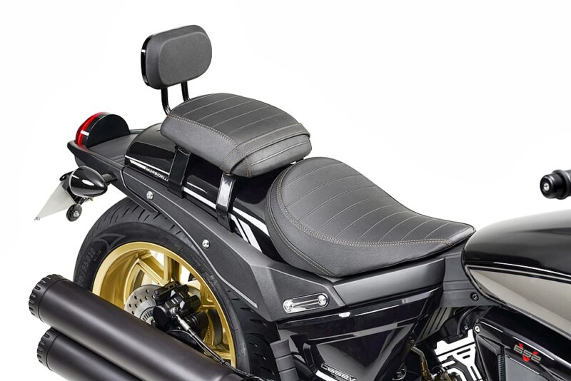 - Tempat Duduk: Pelana penumpang boleh ditanggalkan, membolehkan penukaran gaya bobber.
