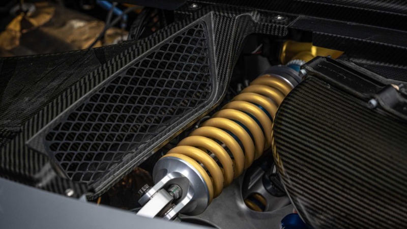 Mercedes-AMG One dibina dengan casis monocoque yang ‘dipegang’ oleh suspensi push-rod untuk prestasi maksima. Terdapat aluminium di bawah badan, dengan lima lengan dan dua strut boleh-laras di depan dan belakang.