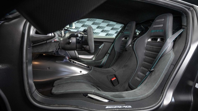 Pengalaman Formula Satu tidak terhenti di enjin atau suspensi. Di dalam AMG One anda akan temui tempat duduk yang dibentuk khas untuk pemandu atau pemiliknya.