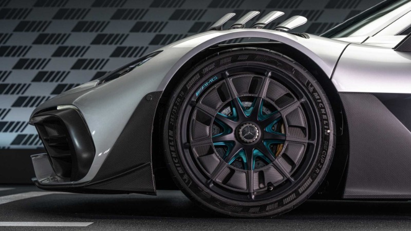 Di luar, AMG One dilengkapi rim 10-bilah dengan pilihan rim magnesium 9-bilah. Tayar pula adalah Michelin Pilot Sport Cup 2 M01, dibangunkan khas untuk hypercar ini dengan brek enam-piston untuk ‘menggenggam’ cakera berukuran 15.6-inci.