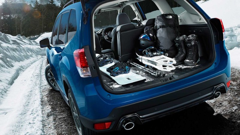 Untuk menampakkan gaya rugged pada SUV ini, Subaru telah memberikan tempat duduk fabrik, dan lantai kargo kalis air dengan rel untuk memudahkannya ditarik keluar.
