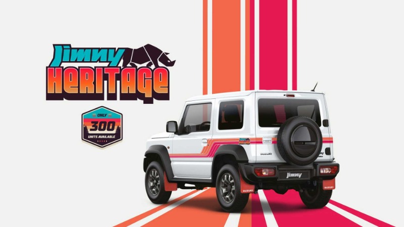Dihadkan hanya 300 unit, Jimny Heritage dihasilkan berdasarkan varian GLX dan dilengkapi dengan mud flap merah di depan dan belakang, dengan tulisan Suzuki untuk yang belakang. Terdapat juga alas kargo Jimny Heritage dengan lencana untuk menandakan ia versi edisi terhad.