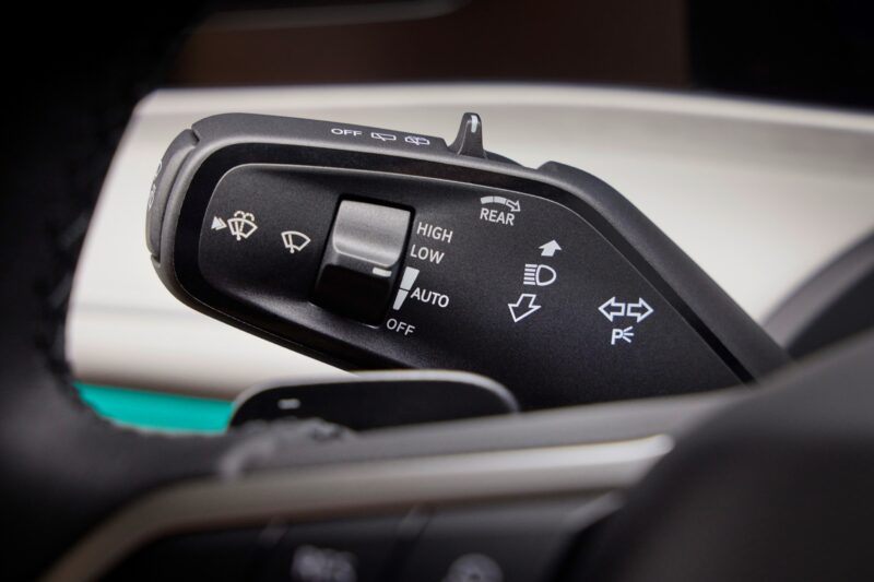 Seperti ID.7 dan ID Buzz, tuil penukar gear kini dipindahkan ke bahagian kanan kolum stereng manakala pada bahagian kiri, terdapat tuil untuk lampu isyarat membelok dan pengelap cermin.