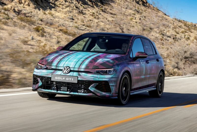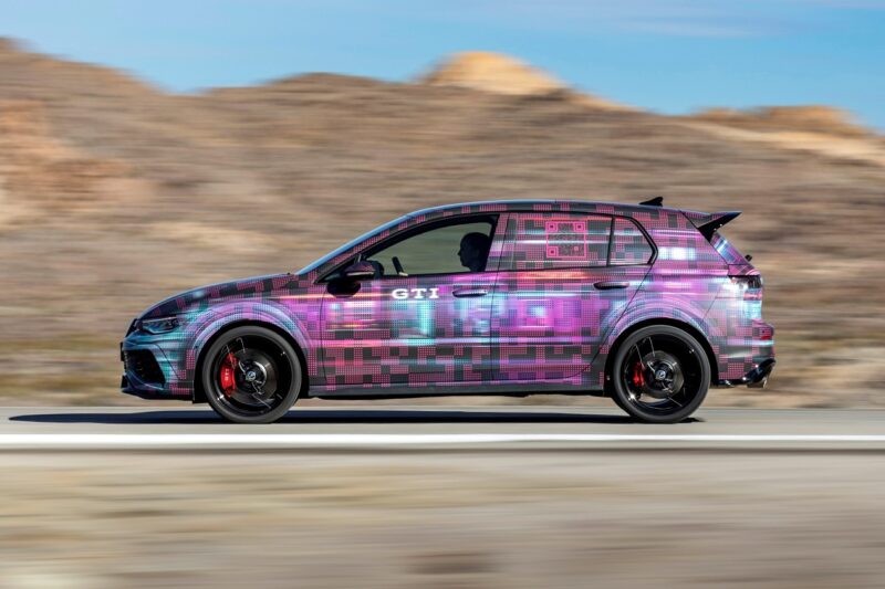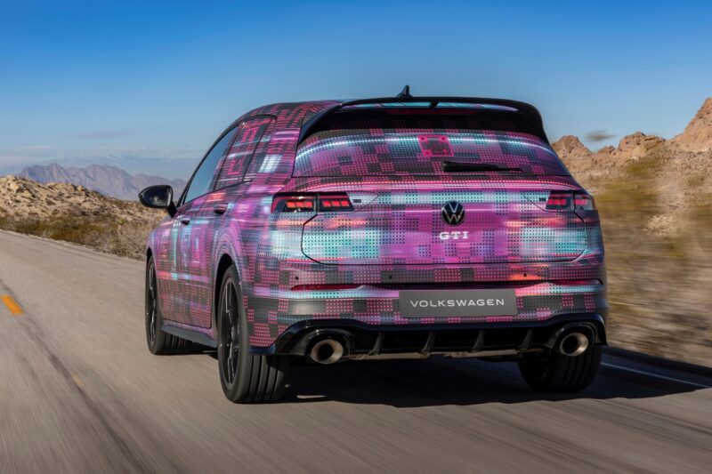 Walaupun masih memakai pelekat penyamaran, Golf GTI facelift boleh dilihat menampilkan lampu depan dan belakang yang direka semula, serta elemen berbentuk ‘J’ pada sudut kiri dan kanan bampar depan.