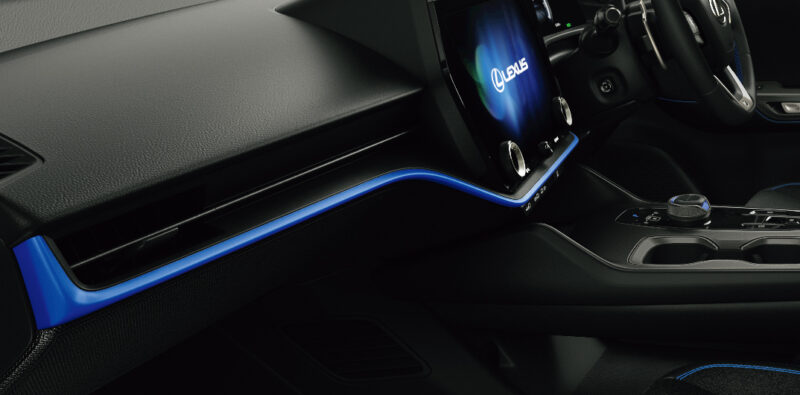 Lexus menggunakan gandingan warna hitam, perak putih yang digelar Hakugin, serta aksen berwarna biru untuk bahagian luar.