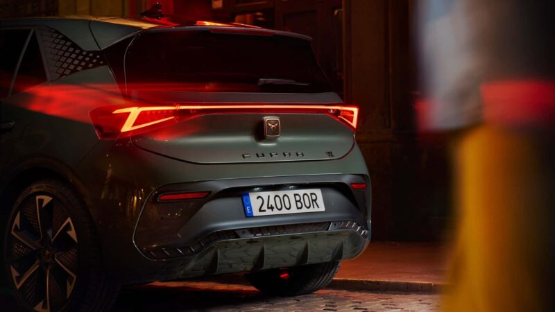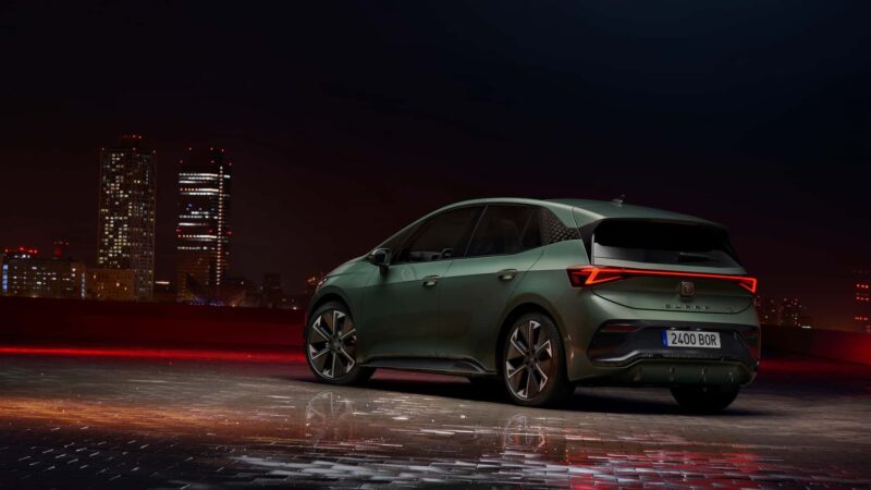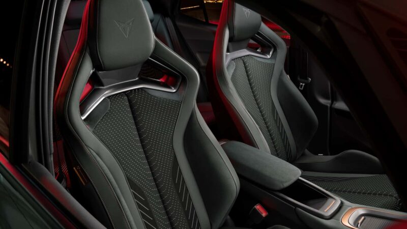 Cupra menawarkan warna Dark Forest atau Midnight Black untuk dipadankan pada bahagian luar Born VZ ini.