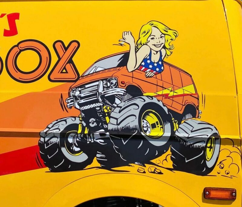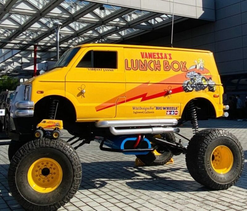 Lunchbox sebenar ini tampil dengan warna kuning yang ikonik, bar perlanggaran di depan, gril dan ekzos krom, grafik “Vanessa’s Lunchbox” di sisi, malah wheelie bar di belakang juga dihasilkan serupa seperti versi RC.