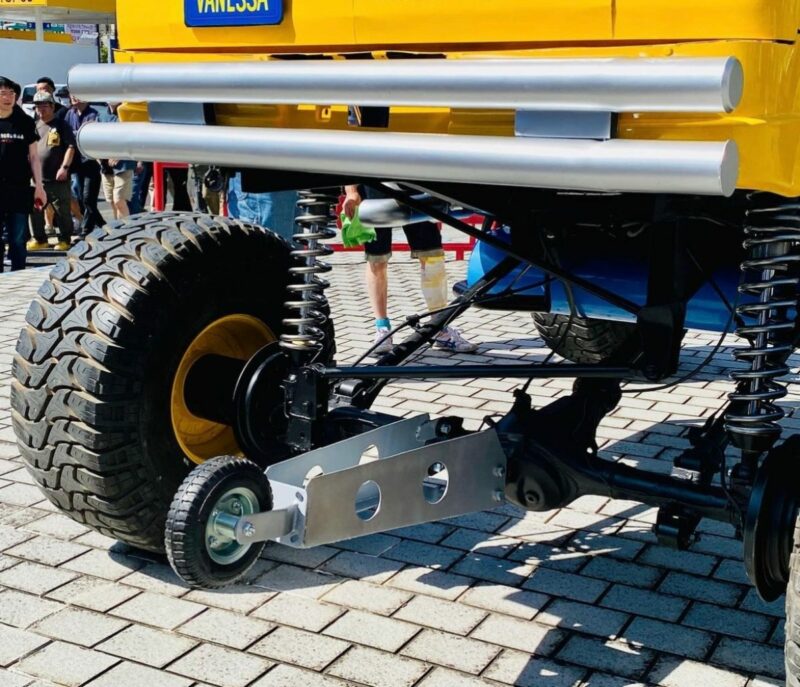 Cuma tayarnya sahaja tidak cukup besar, bukan menggunakan tayar monster truck gergasi. Sebaliknya versi sebenar ini menggunakan tayar off-road biasa dan casisnya nampak seperti pacuan empat-roda (4WD) jika dilihat pada gandar depan dan belakang.