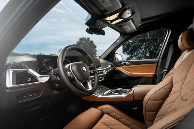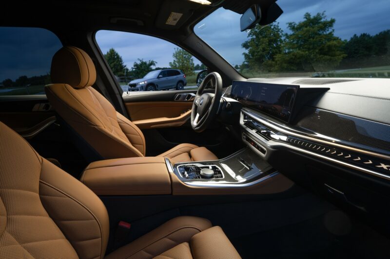 Di dalam, kerusi sport didatangkan dalam upholsteri kulit yang boleh didapati dalam warna hitam, Cognac, Coffee atau Silver Sensafin. Trim gentian karbon pada konsol tengah dan papan pemuka, yang sebelum ini didatangkan standard pada X5 M60i dan X5 M Competition, turut disertakan pada model ini.