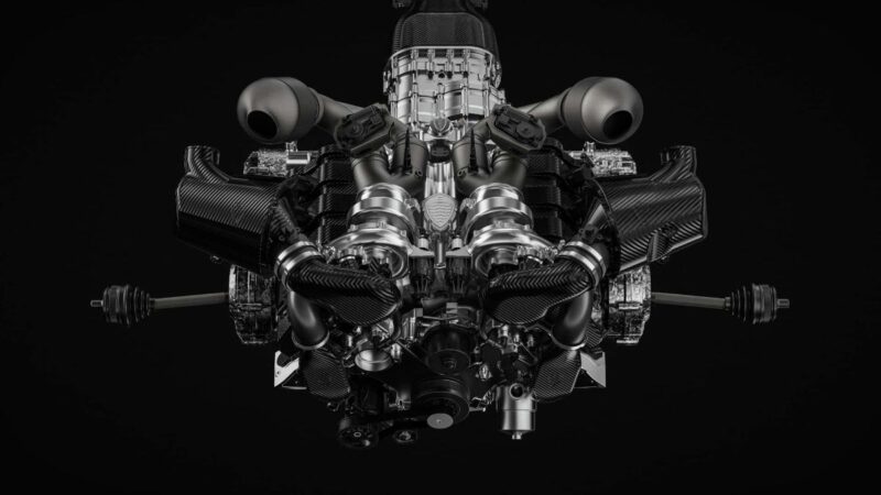 Enjin 2.0-liter dengan nama timangan Tiny Friendly Giant adalah sebahagian dari sistem hibrid yang terdiri dari unit tiga-silinder tersebut bersama tiga motor elektrik. Pakej ini membekalkan output keseluruhan 1,700hp dan 3,499Nm tork.
