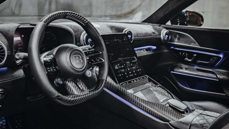 Seperti kebanyakan rekaan Brabus yang lain, bahagian kokpit dinaik taraf dengan kemasan gentian karbon, upholsteri Alcantara dan kulit lembut, serta logo Brabus.
