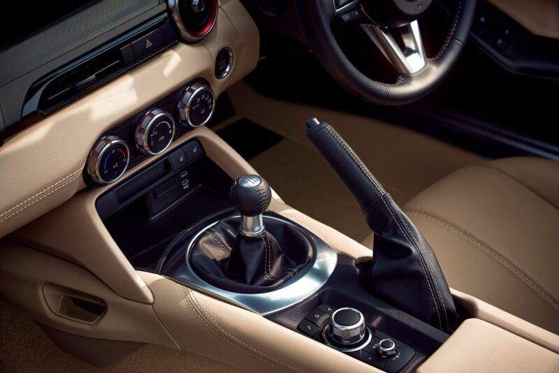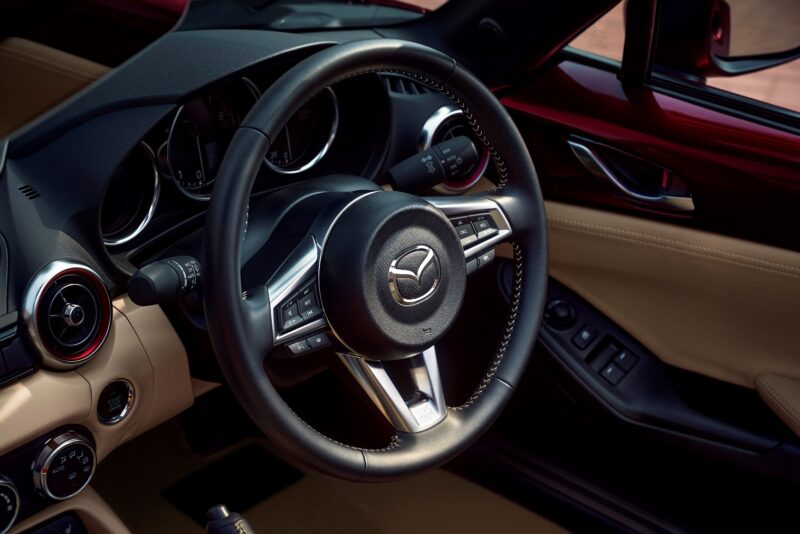 Untuk bahagian luaran, MX-5 35th Anniversary Edition tampil dalam warna Artisan Red Premium Metallic yang diaplikasikan menggunakan teknologi ‘Takuminuri’ bagi menonjolkan lagi garisan-garisan dan lengkungan badan MX-5.