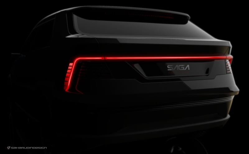 Dapat dilihat bahawa Saga Knight mempunyai rekaan moden dan boleh dikatakan agak futuristik, sebagai contoh pada lampu depan LED bertitik yang dihubungkan oleh strip LED memanjang, rekaan bumbung terapung dengan tiang-A hitam, dan lampu LED belakang yang juga mendapat strip nipis memanjang.