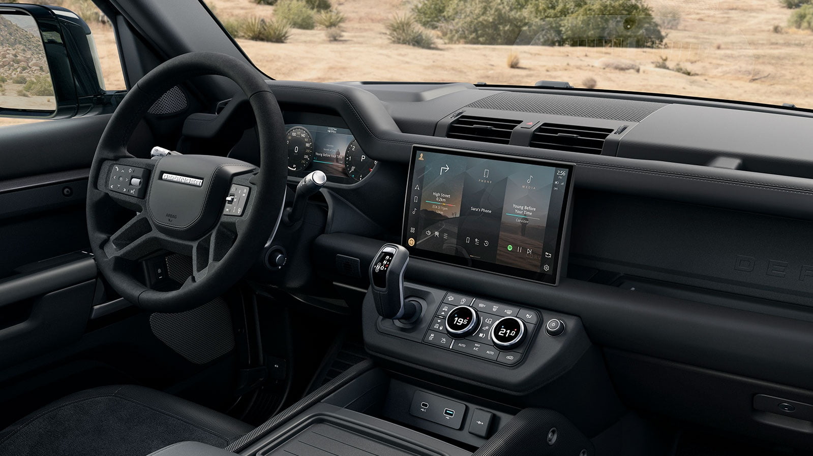 Kotak gear ialah automatik 8-kelajuan ZF untuk kedua-dua jenis enjin, dengan dua transfer case untuk sistem pacuan empat roda. Defender juga dilengkapi dengan pilihan pengunci differential tengah dan belakang yang boleh dikawal dengan ciri Terrain Response.