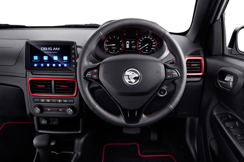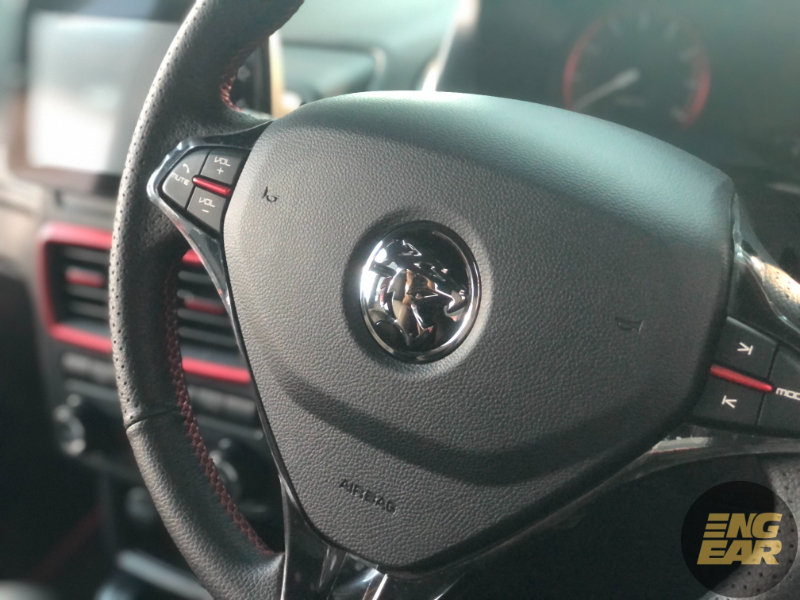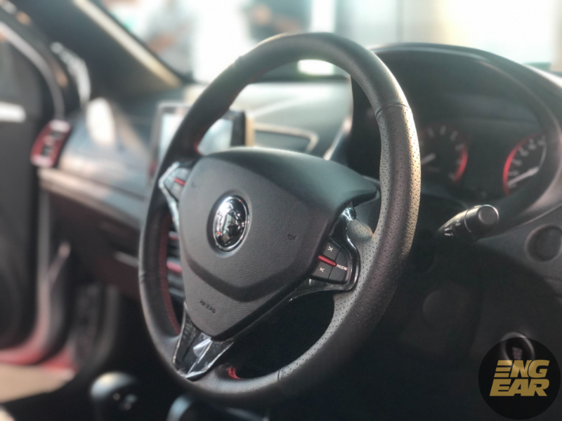 Tempat duduk pula mendapat balutan kulit baharu dengan jahitan merah, dan jahitan ini juga terdapat pada roda stereng.