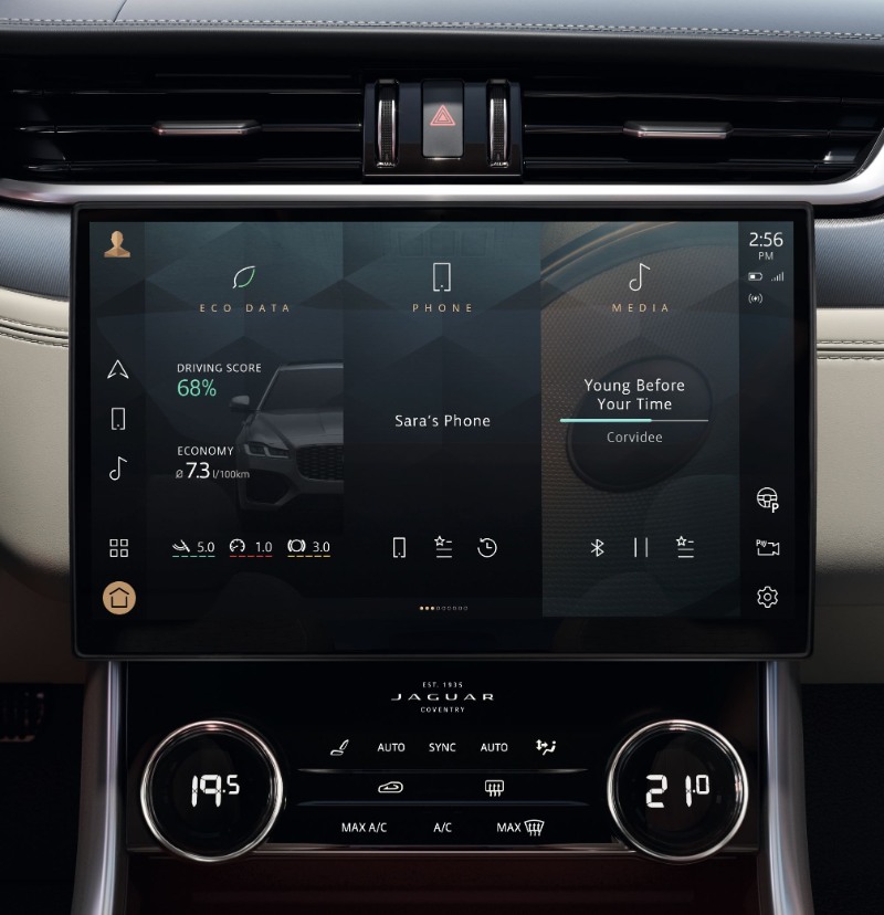 Untuk facelift kali ini juga, XF 2022 mendapat skrin infotainmen Pivi Pro yang lebih besar dan melengkung, bersaiz 11.4-inci. Unit ini menurut Jaguar memudahkan pengguna, dan menyokong sambungan Apple CarPlay dan Android Auto.