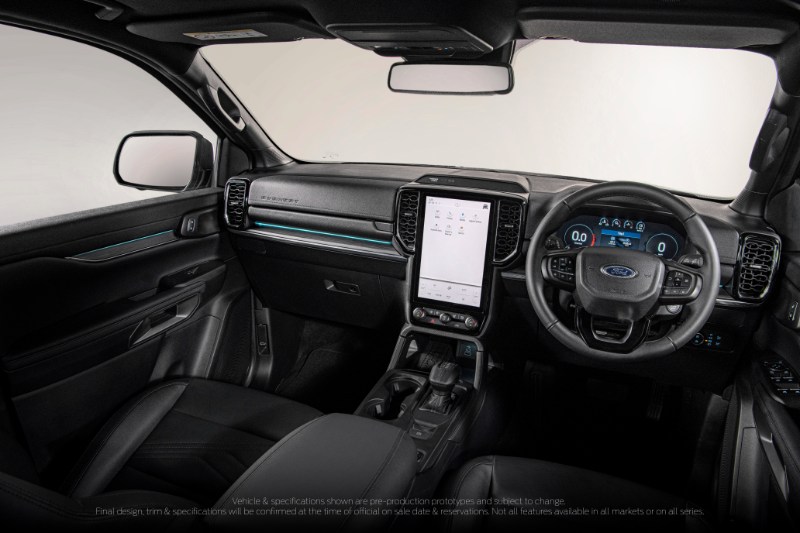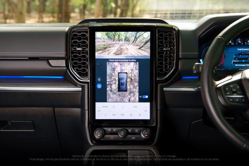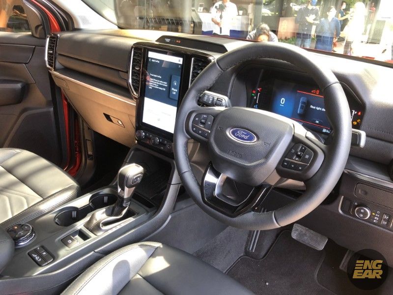 Sementara itu di konsol tengah terletaknya skrin infotainmen menegak bersaiz 12-inci untuk Titanium (10.1-inci untuk Trend dan Sport) yang menggunakan perisian Ford SYNC 4A dan menyokong sambungan Android Auto dan Apple Carplay.