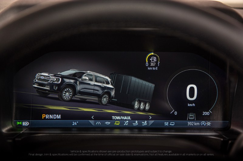 Di bahagian dalam pula, Ford Everest menampilkan binaan papan pemuka lebar, 10 pemegang cawan, tempat duduk dengan konfigurasi fleksibel dan balutan kulit hitam, dan soket-soket kuasa seperti AC 230V dengan kapasiti 400W.
