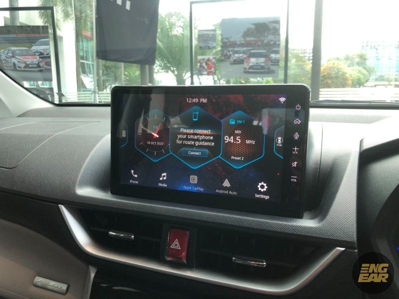 Unit infotainmen di konsol tengah pula ialah skrin sesentuh 9-inci yang menyokong Android Auto dan Apple Carplay tanpa-wayar.